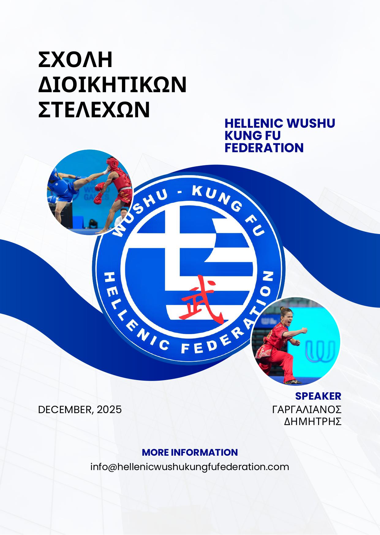 Σχολή Διοικητικών Στελεχών Πληροφορίες στο email της ομοσπονδίας:info@hellenicwushukungfufederation.com